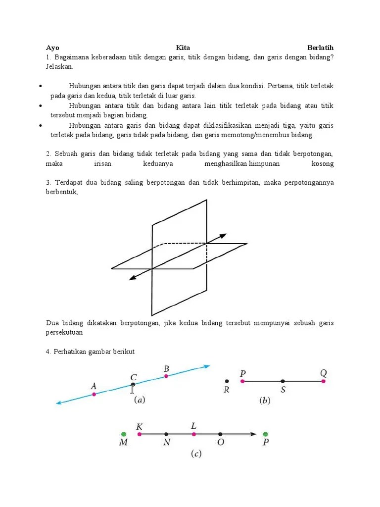 Hubungan antar garis yang ditunjukkan pada gambar tersebut adalah gambar garis sejajar berpotongan dan berhimpit. Garis dan sudut 193 gambar 7.6 contoh 7.1 gambar di bawah ini menunjukkan sebuah garis dengan empat titik yang berbeda.